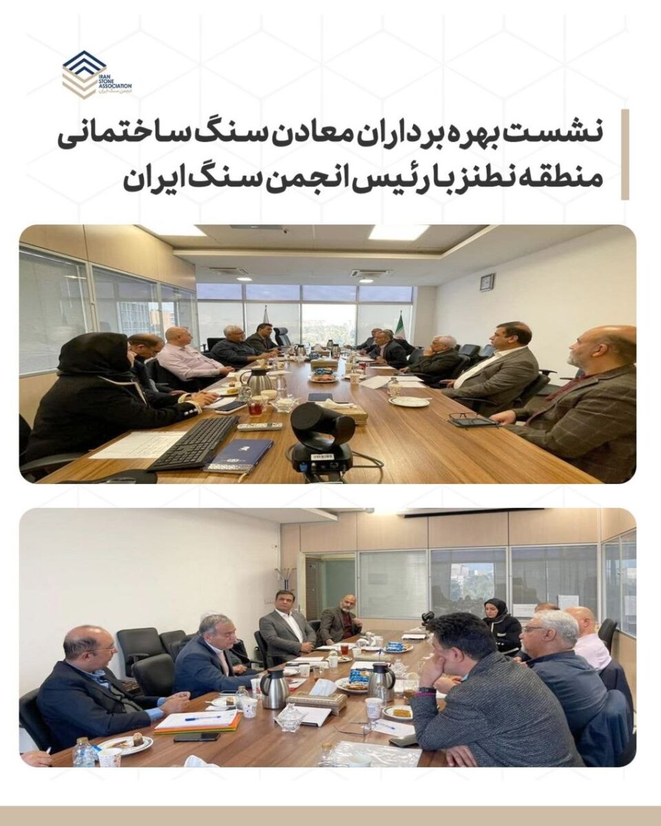 🔹 در راستای بررسی میدانی، بیواسطه و دقیق مسائل و چالشهای بهرهبرداران معادن سنگ نطنز بهویژه موضوعات کلیدی مرتبط با تمدید پروانههای بهرهبرداری نشستی تخصصی با حضور بهرام شکوری، رئیس انجمن سنگ ایران و عضو شورای عالی معادن، شوذب جباری عضو هیات مدیره و زیبا یزدانی دبیر انجمن سنگ ایران و جمعی از بهره برداران معادن سنگ منطقه نطنز برگزار شد.