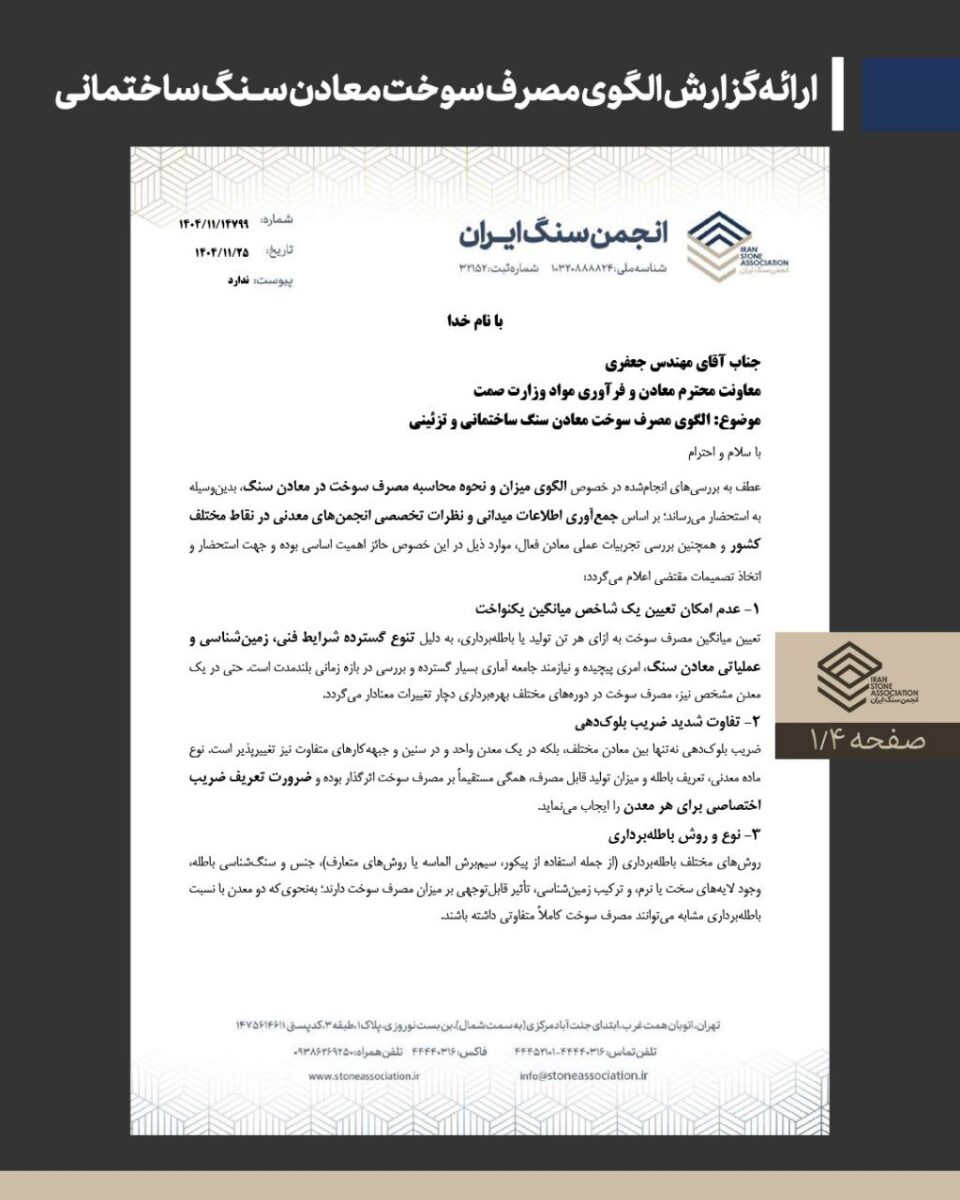 📌 قابل توجه بهره برداران محترم معادن سنگ، مدیران واحدهای سنگبری،تشکلهای استانی و کلیه ذینفعان این حوزه: