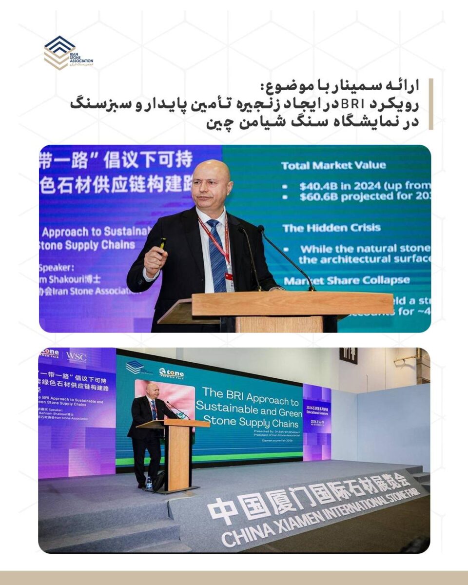 🔹 بهرام شکوری، رئیس انجمن سنگ ایران سمینار تخصصی با موضوع رویکرد BRI در زنجیره تامین پایدار و سبز سنگ