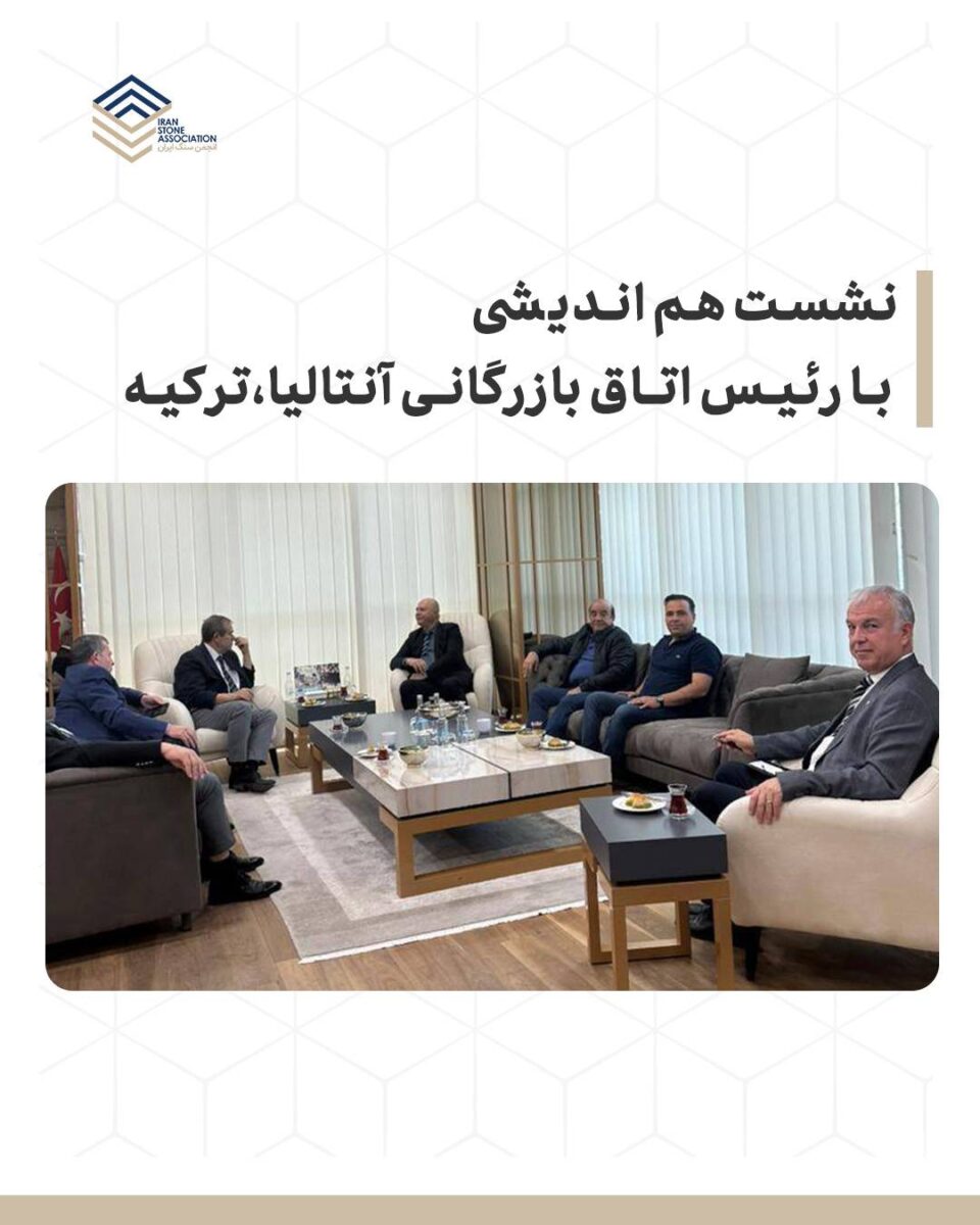 🔹بهرام شکوری رئیس انجمن سنگ ایران در دیدار با یوسف حاج سلیمان رئیس اتاق بازرگانی آنتالیا و اعضای هیئت رییسه این اتاق به منظور جذب حمایت اتاق بازرگانی آنتالیا از سرمایه گذاران خارجی و راههای تسهیل تعرفه ها به منظور ورود ماشین آلات و مواد اولیه از ایران و همکاری های تجاری فی مابین پرداختند.