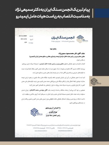 اخبار پیام تبریک انجمن سنگ ایران به دکتر سمیعینژاد به مناسبت انتصاب به ریاست هیات عامل ایمیدرو مهر ۲۷, ۱۴۰۴