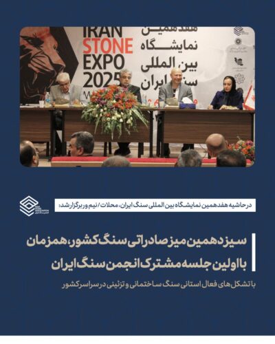 نمایشگاهها در حاشیه هفدهمین نمایشگاه بین المللی سنگ ایران، محلات/نیم ور سیزدهمین میز صادراتی سنگ کشور، همزمان با اولین جلسه مشترک انجمن سنگ ایران با تشکلهای فعال استانی سنگ ساختمانی در سراسر کشور تشکیل شد. آبان ۳, ۱۴۰۴