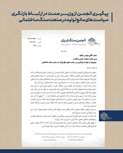اخبار ابراز نگرانی از وضع عوارض صادراتی بر مواد خام و نیمه خام معدنی و حذف معافیت های مالیاتی مهر ۱, ۱۴۰۴