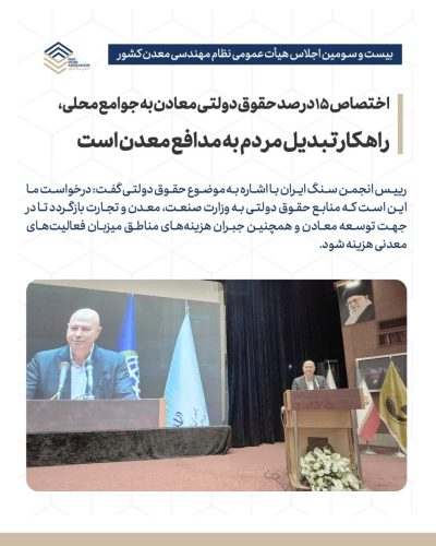 اخبار اختصاص ۱۵ درصد حقوق دولتی معادن به جوامع محلی، راهکار تبدیل مردم به مدافع معدن است شهریور ۲۲, ۱۴۰۴