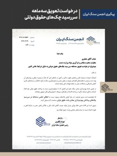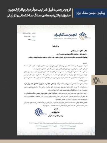 بخشنامه ها پیگیری انجمن سنگ ایران در ارتباط با ضرایب موثر در نرم افزار تعیین حقوق دولتی در معادن سنگ بهمن ۱۴, ۱۴۰۴