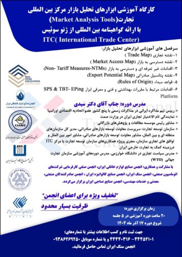 دورههای آموزشی کارگاه آموزشی ابزارهای تحلیل بازار قابل توجه صادر کنندگان، وارد کنندگان، تولید کنندگان و تجار محترم دی ۳, ۱۴۰۴