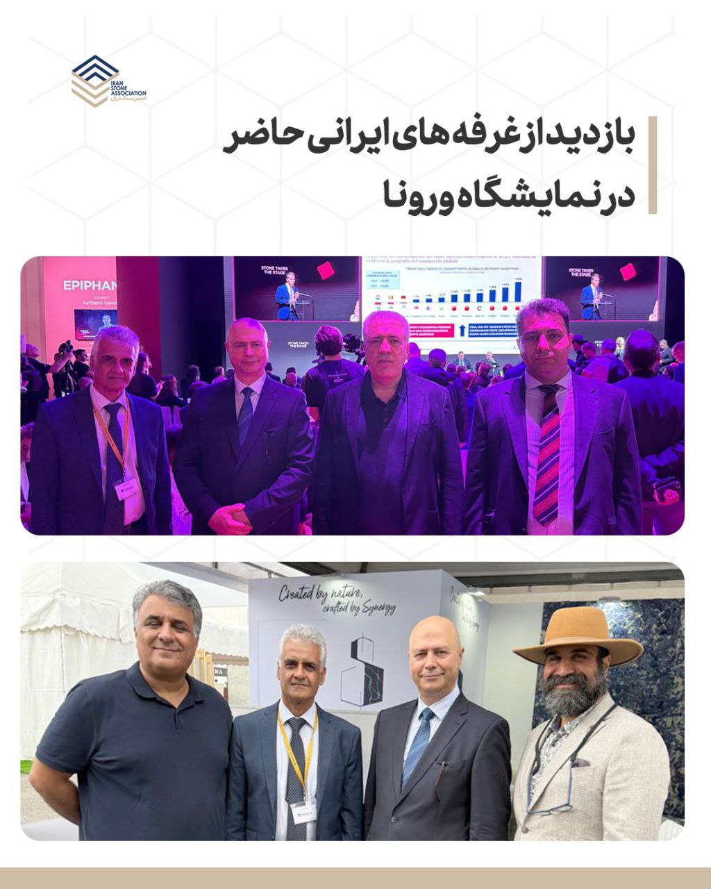 دکتر شکوری، رئیس انجمن سنگ ایران با حضور در نمایشگاه سنگ ورونا ایتالیا، از غرفه های ایرانی حاضر در نمایشگاه مرمومک بازدید کردند.