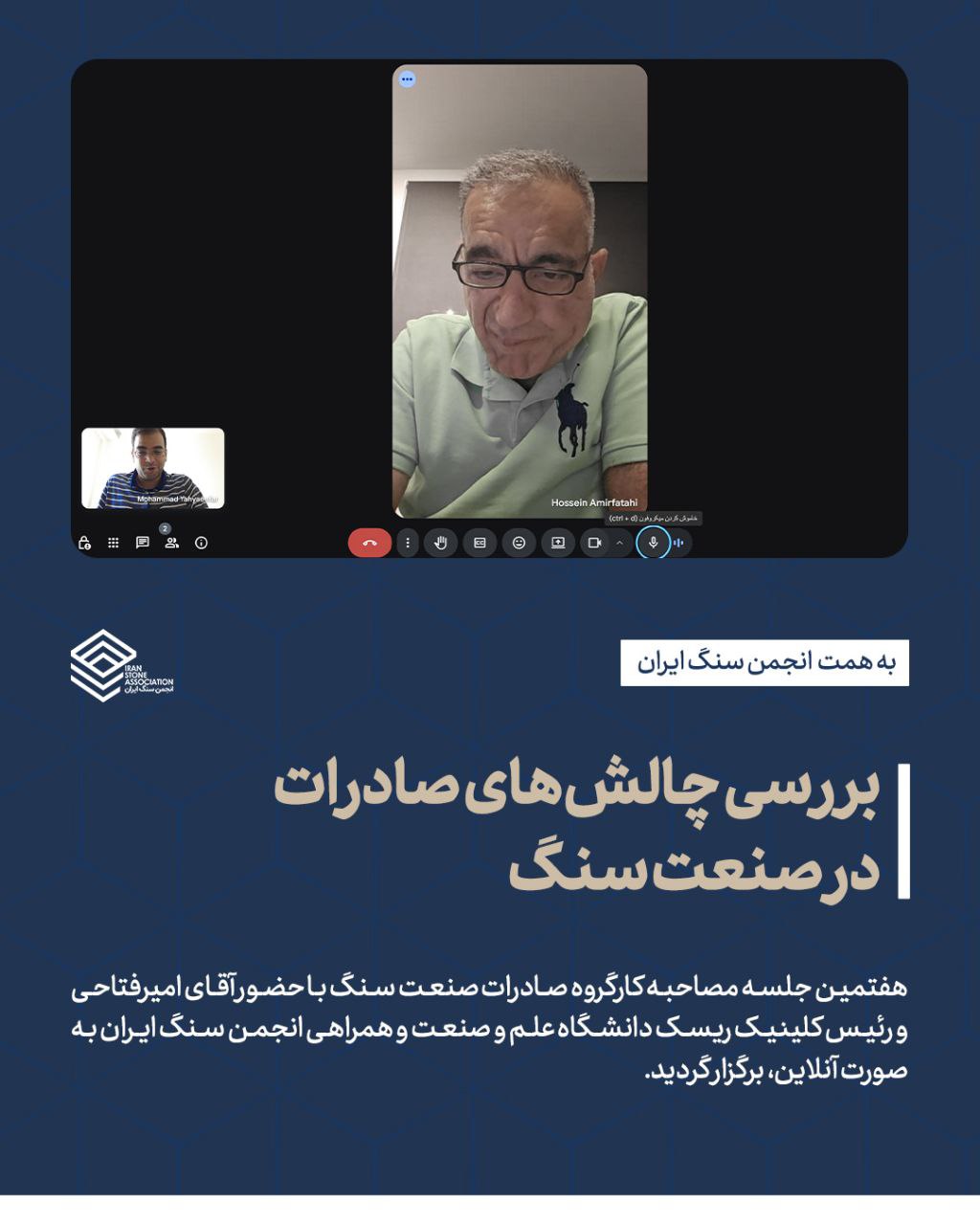 هفتمین جلسه مصاحبه کارگروه صادرات صنعت سنگ با حضور آقای امیرفتاحی و رئیس کلینیک ریسک دانشگاه علم و صنعت و همراهی انجمن سنگ ایران به